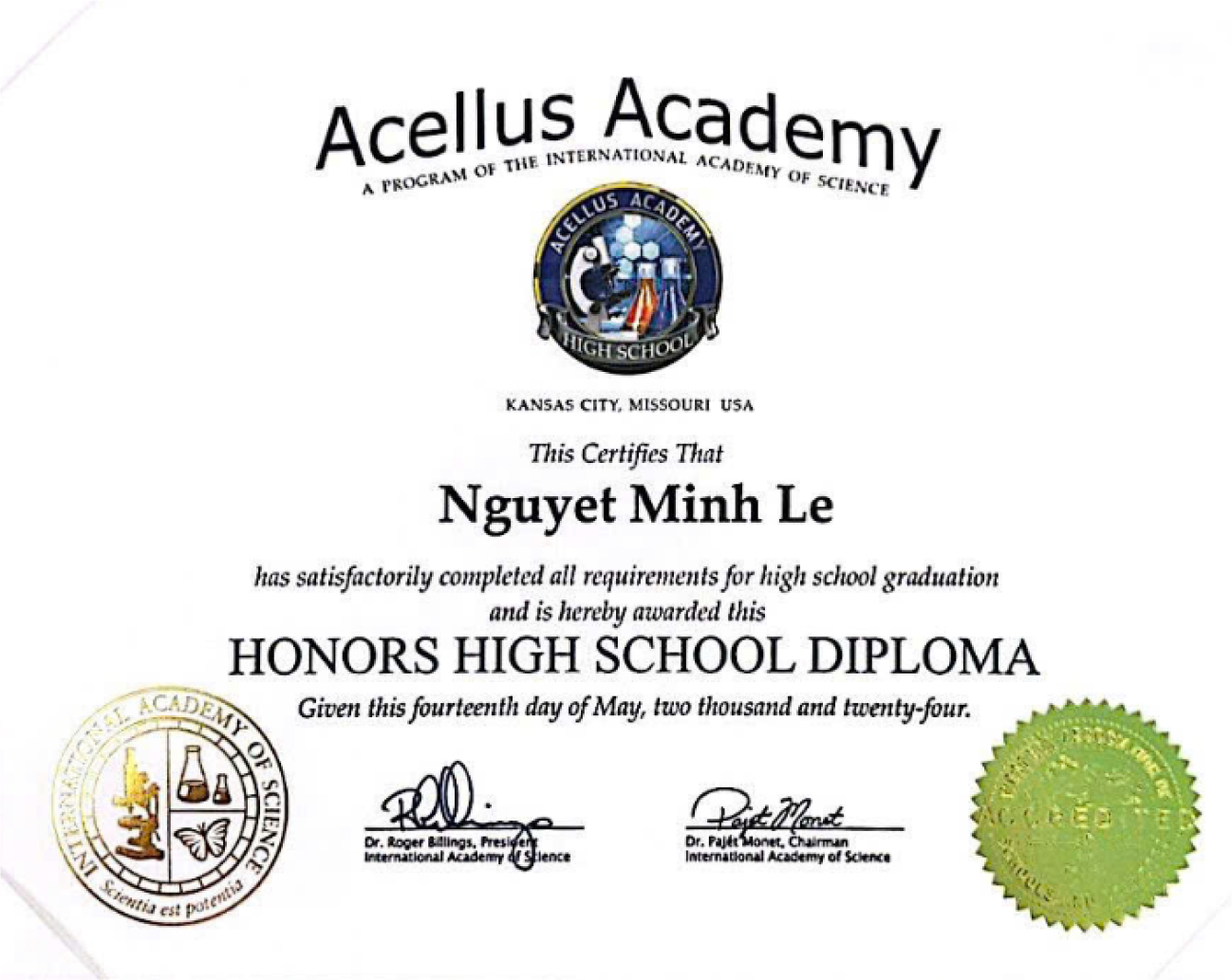 Chương trình Advanced Acellus là chương trình phổ thông Mỹ theo tiêu chuẩn giáo dục chung của các bang (Common Core State Standards) được nghiên cứu và phát triển bởi Viện Khoa học và Công nghệ Quốc tế do tổ chức Acellus Academy cung cấp.